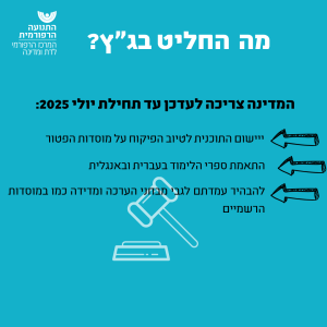 המדינה צריכה לעדכן עד תחילת יולי 2025: